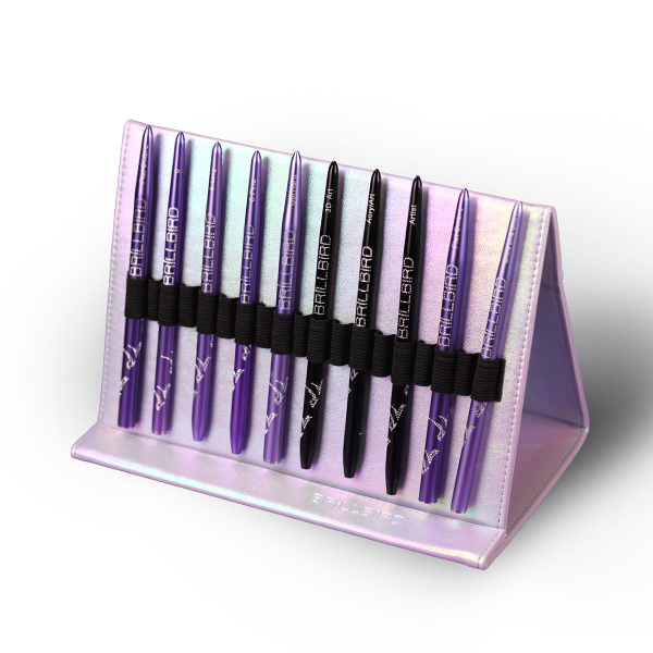 Ez az irizáló fényben játszó műbőr ecsettartó nemcsak praktikus tároló, hanem elegáns kiegészítő is, amely feldobja a munkakörnyezetedet. 25,5 × 20 cm-es méretével akár 20 ecset is kényelmesen elfér benne, így mindig rendezetten és kézközelben tarthatod kedvenc eszközeidet. A tartós, könnyen tisztítható anyag hosszú élettartamot biztosít, különlegessége pedig, hogy kinyitva és kitámasztva ecsetdisplayként is használható. Így munka közben nemcsak rendszerez, hanem stílusosan prezentálja is az ecseteidet, megkönnyítve a mindennapi szalonmunkát.